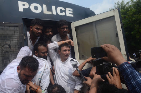 During the attempt to encircle the Chief Minister's residence on Monday, the police implemented stringent measures to halt the NSUI workers, deploying a significant police presence. As a result, Link Road No. 1 in the capital city of Bhopal was closed during protest.