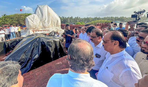 Maharashtra Deputy Chief Minister Ajit Pawar visited the site of the Chhatrapati Shivaji Maharaj statue at Rajkot Fort in the Sindhudurg district to assess the situation following the recent controversy surrounding the statue.